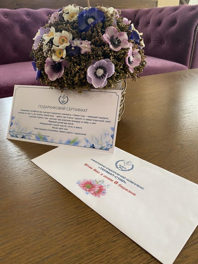 День Жінок вже зовсім скоро! Тож, санаторний комплекс «Термал-Стар» подбав про найкращий подарунок для чарівних жінок, які відпочиватимуть у нас 8 березня – подарунковий сертифікат для повного релаксу.